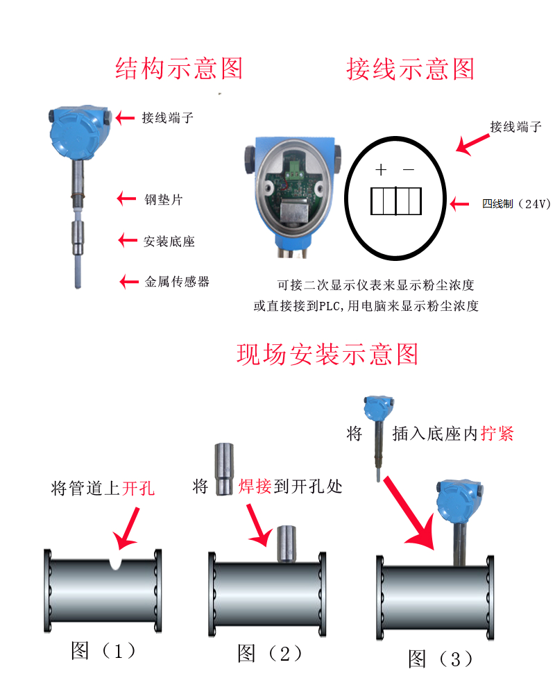 2、標(biāo)準(zhǔn)四線制4-20mA電流輸出,抗干擾能力強(qiáng),易于遠(yuǎn)距離信號傳輸,對信號傳輸導(dǎo)線無特殊要求,輸出電流與粉塵濃度成線性關(guān)系,方便后續(xù)的PLC數(shù)據(jù)處理。