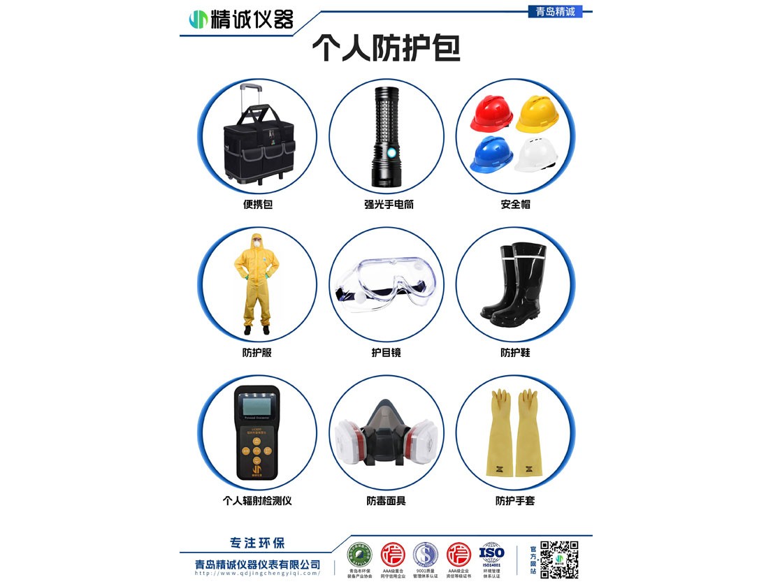根據(jù)《生態(tài)環(huán)境保護(hù)綜合行政ZF裝備配備標(biāo)準(zhǔn)化建設(shè)指導(dǎo)標(biāo)準(zhǔn)(2020 年版)》配備的JC-ZF200生態(tài)環(huán)境個(gè)人防護(hù)包配置,配備了強(qiáng)光手電、安全帽、有毒有害物質(zhì)防護(hù)服、輻射防護(hù)設(shè)備、護(hù)目鏡、防護(hù)鞋等。